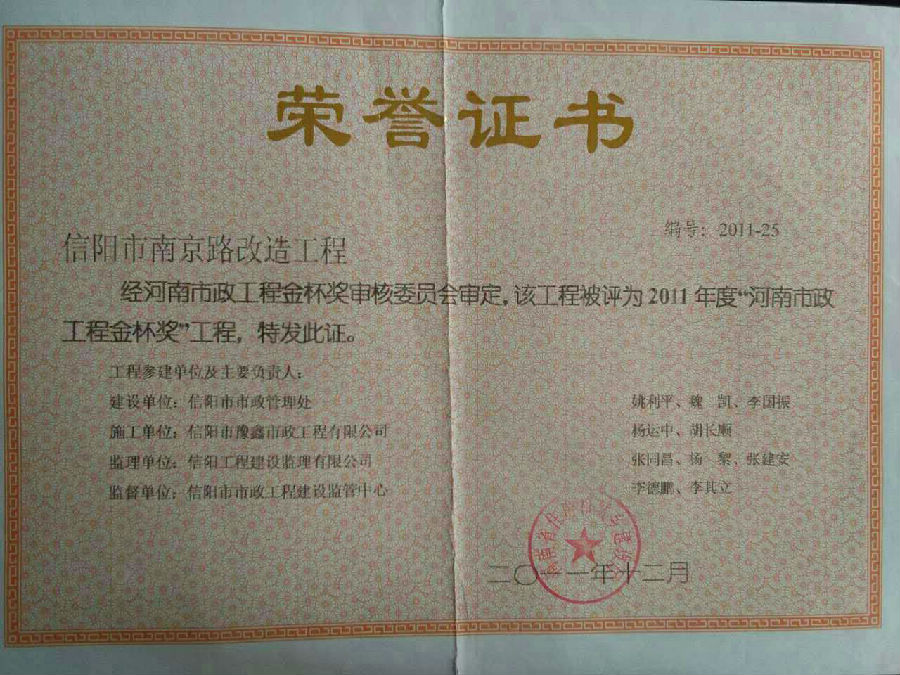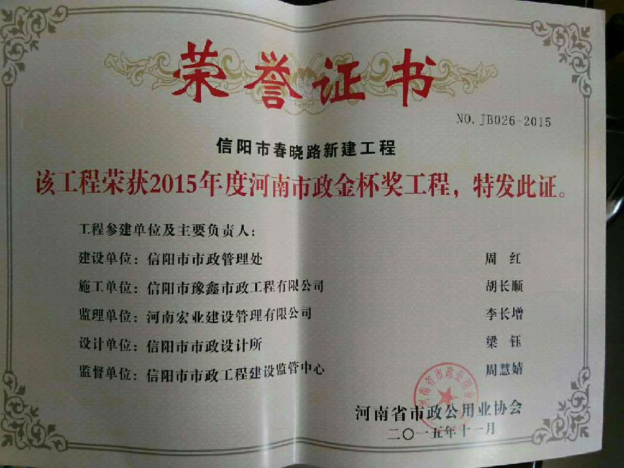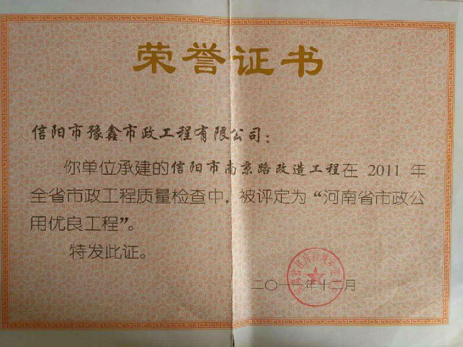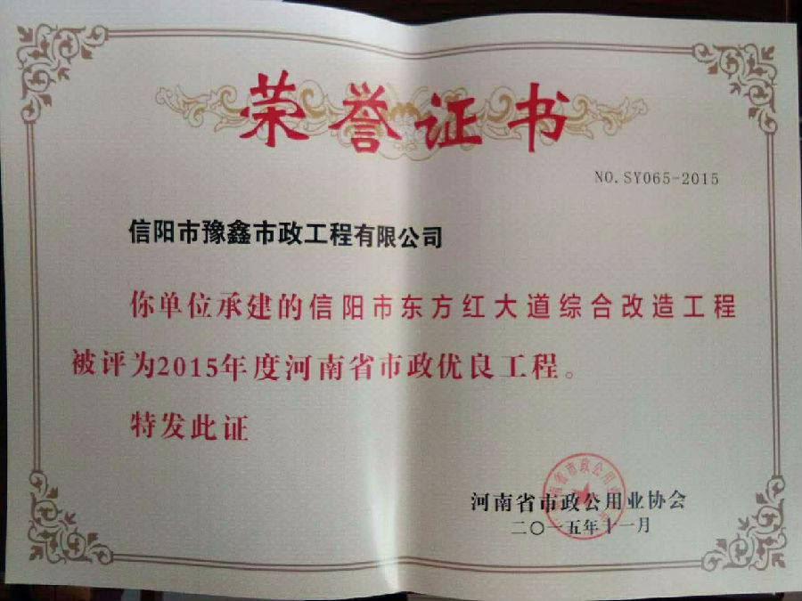 好風(fēng)憑借力,送我上青云。近年來(lái),公司積極參與城市市政基礎(chǔ)設(shè)施建設(shè)施工,積極參與市場(chǎng)競(jìng)爭(zhēng),先后承擔(dān)施工了市政府重點(diǎn)工程南京路道路改造工程、春曉路道路改造工程,東方紅大道道路改造工程、龍江東路新建工程等重點(diǎn)民生工程,其中南京路道路改造工程被省建設(shè)廳評(píng)為“中州杯”, 春曉路和東方紅大道道路改造工程被省建設(shè)廳評(píng)為“省優(yōu)工程”,成為城區(qū)一道道亮麗的風(fēng)景線(xiàn)。參與施工了市典范小區(qū)“臺(tái)北城上城”、“恒大名都”以及師范學(xué)院、職業(yè)技術(shù)學(xué)院、交警支隊(duì)和軍區(qū)道路工程,參與施工了雞公山管理區(qū)、南灣管理區(qū)、明港鎮(zhèn)和羅山縣等部分道路小區(qū)工程施工,累計(jì)大小各類(lèi)施工工程三百余項(xiàng),企業(yè)影響力不斷擴(kuò)大、輻射力不斷增強(qiáng),市場(chǎng)份額不斷提高,企業(yè)信譽(yù)不斷彰顯,為信陽(yáng)城市建設(shè)做出了積極貢獻(xiàn),為企業(yè)的可持續(xù)發(fā)展插上了騰飛的翅膀。